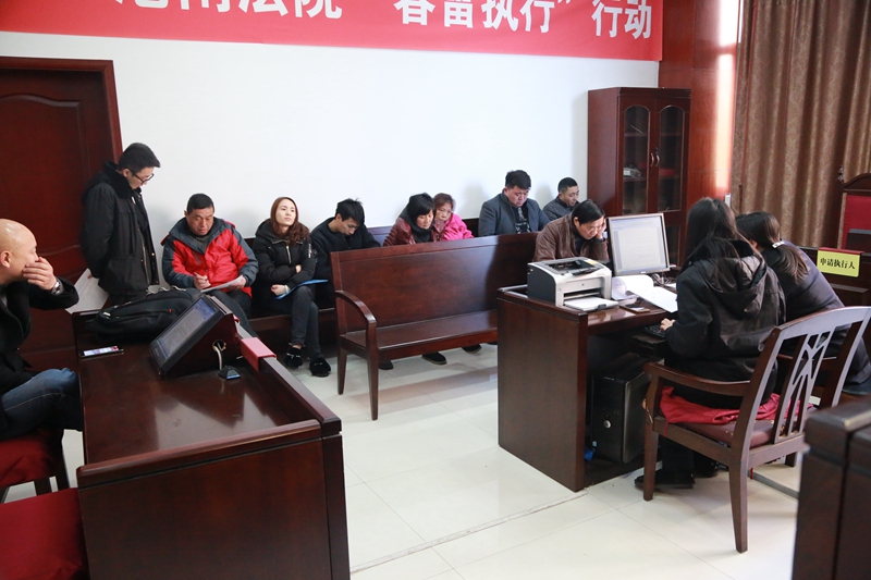 据悉,当天共有7名被执行人被带至法院,其中4人与申请执行人达成和解,履行标的30万余元,其余3人因拒不履行义务被依法实施司法拘留,将在班房中度过这个春节。