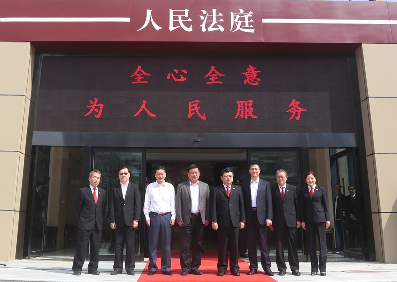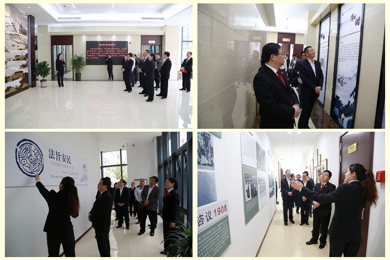 升旗仪式结束后,各位领导参观了唐闸法庭,并对法庭审判工作、基础设施和文化建设工作进行了指导。
